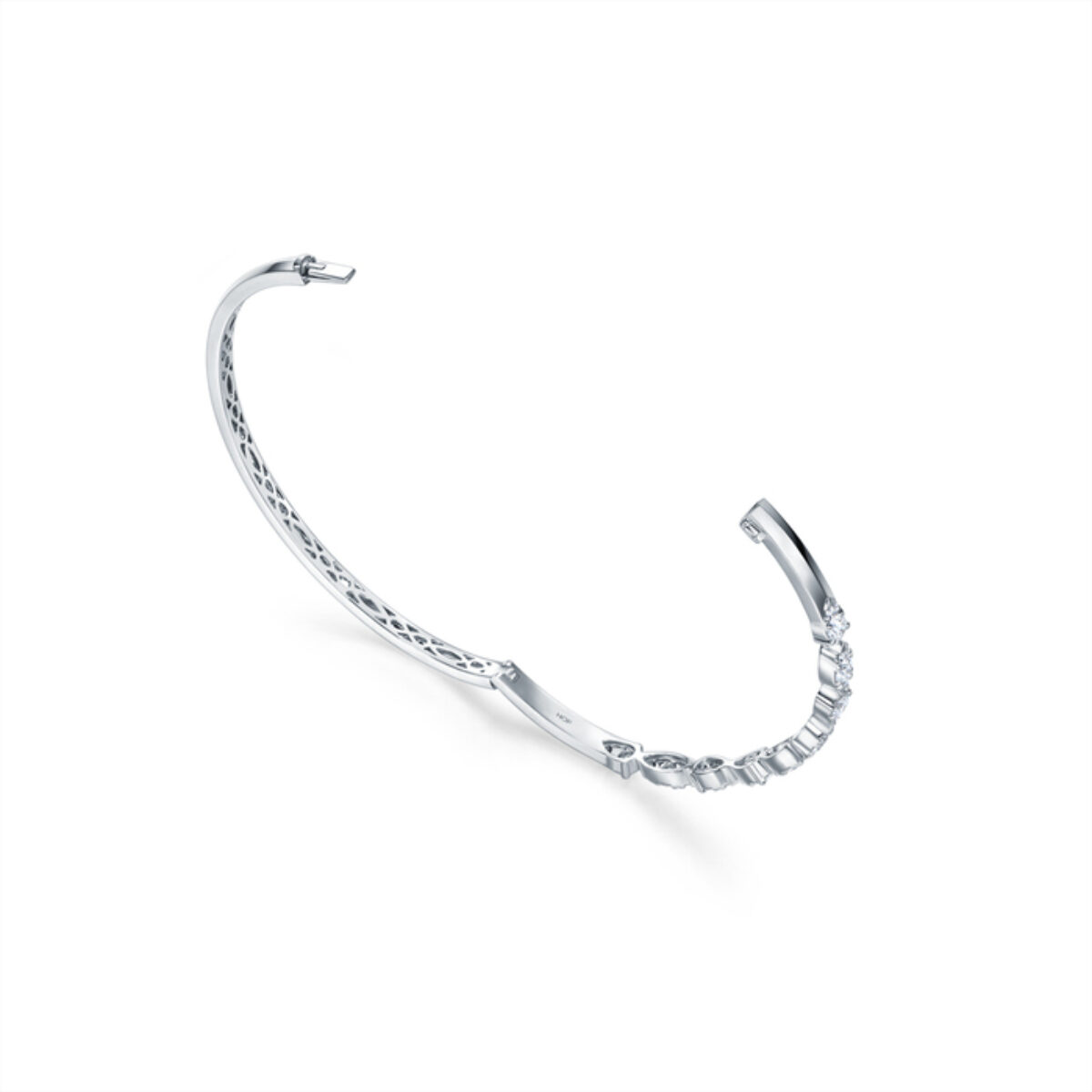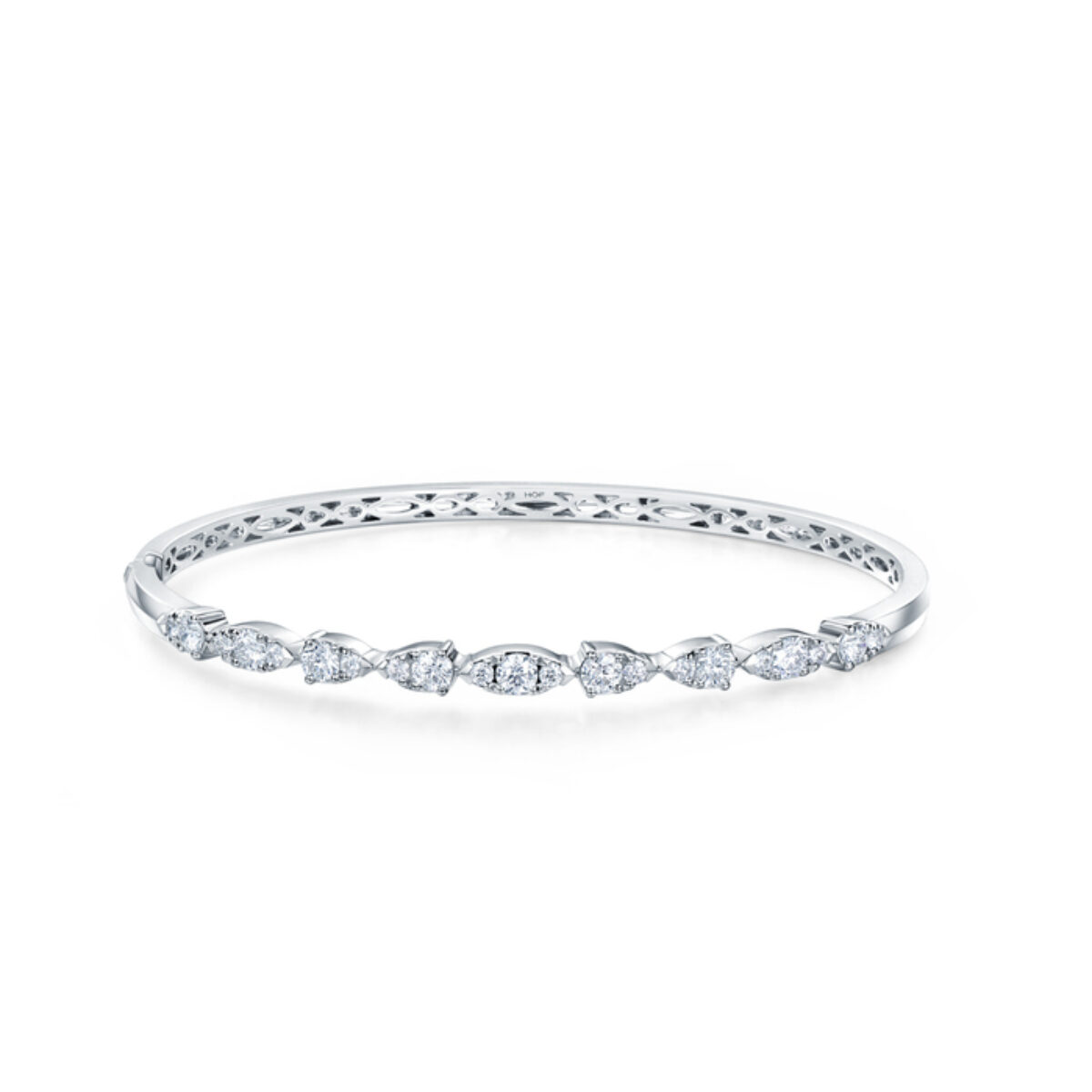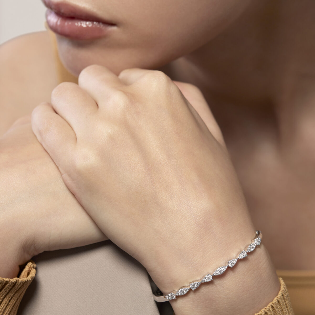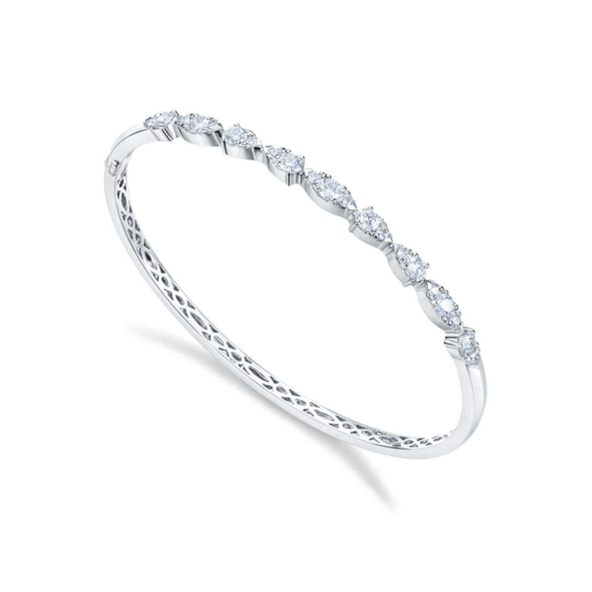 This diamond Bangle is the perfect addition to any wrist party. This chic and understated design shimmers on the wrist and features marquise and pear-shaped design elements made from illusion set diamonds.