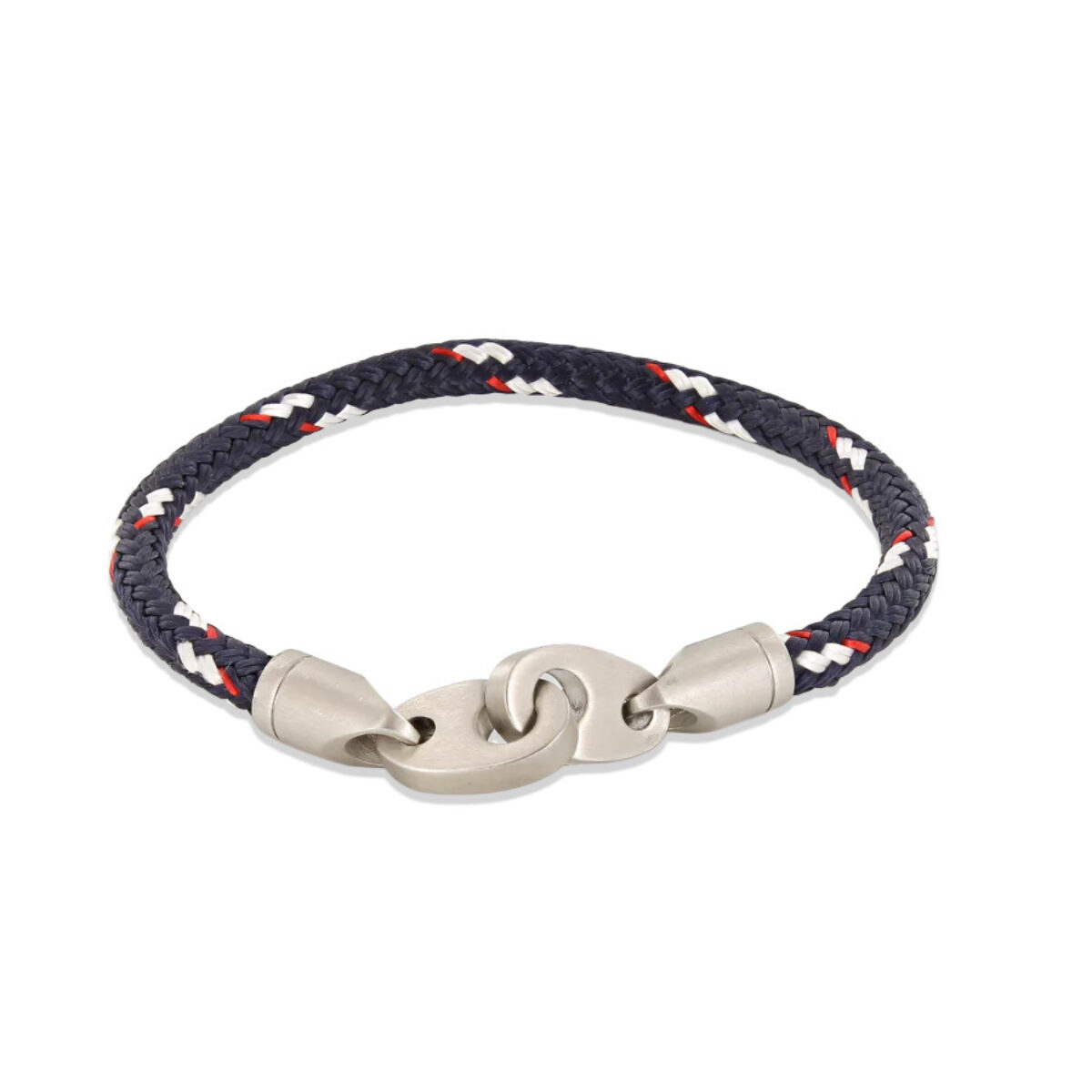 A classic and sporty men's rope bracelet. The original Brummel hardware meets braided racing rope. If you sail, kite board, or just run on the beach, wear what you love to do on your “sleeve”. Stainless Steel hardware, matte finish. Nylon braided marine rope.