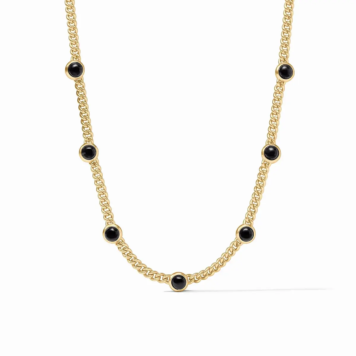 Product Details: 24K gold plate, imported glass. Length: 16.5 / 17.5 inches (adjustable). Closes with lobster clasp.