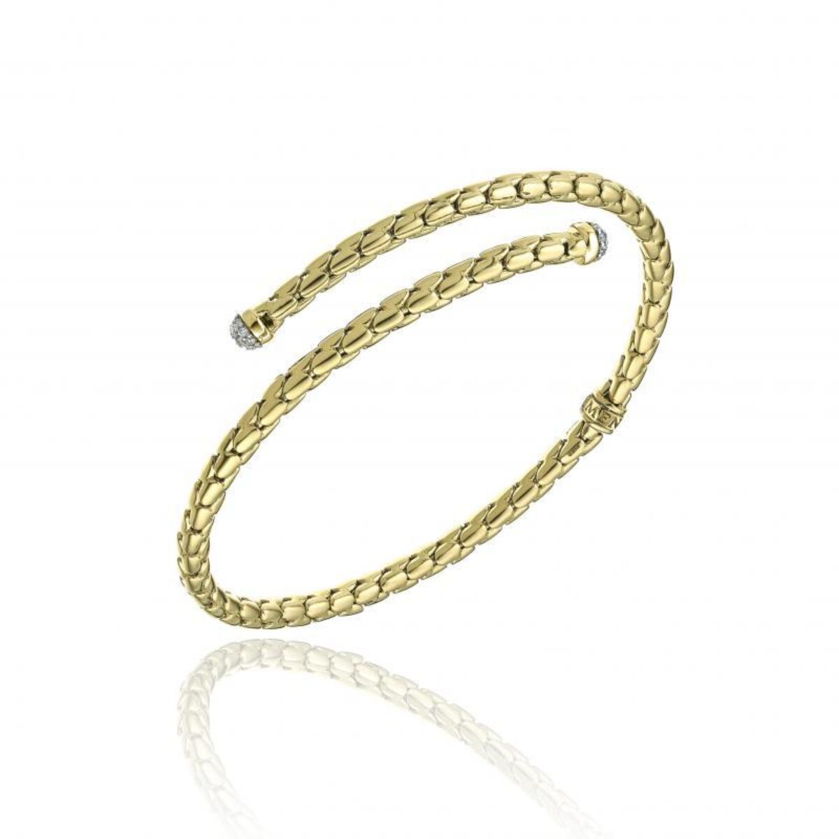 18 kt yellow gold contrariè stretchable bracelet with diamond pavè on the ends.