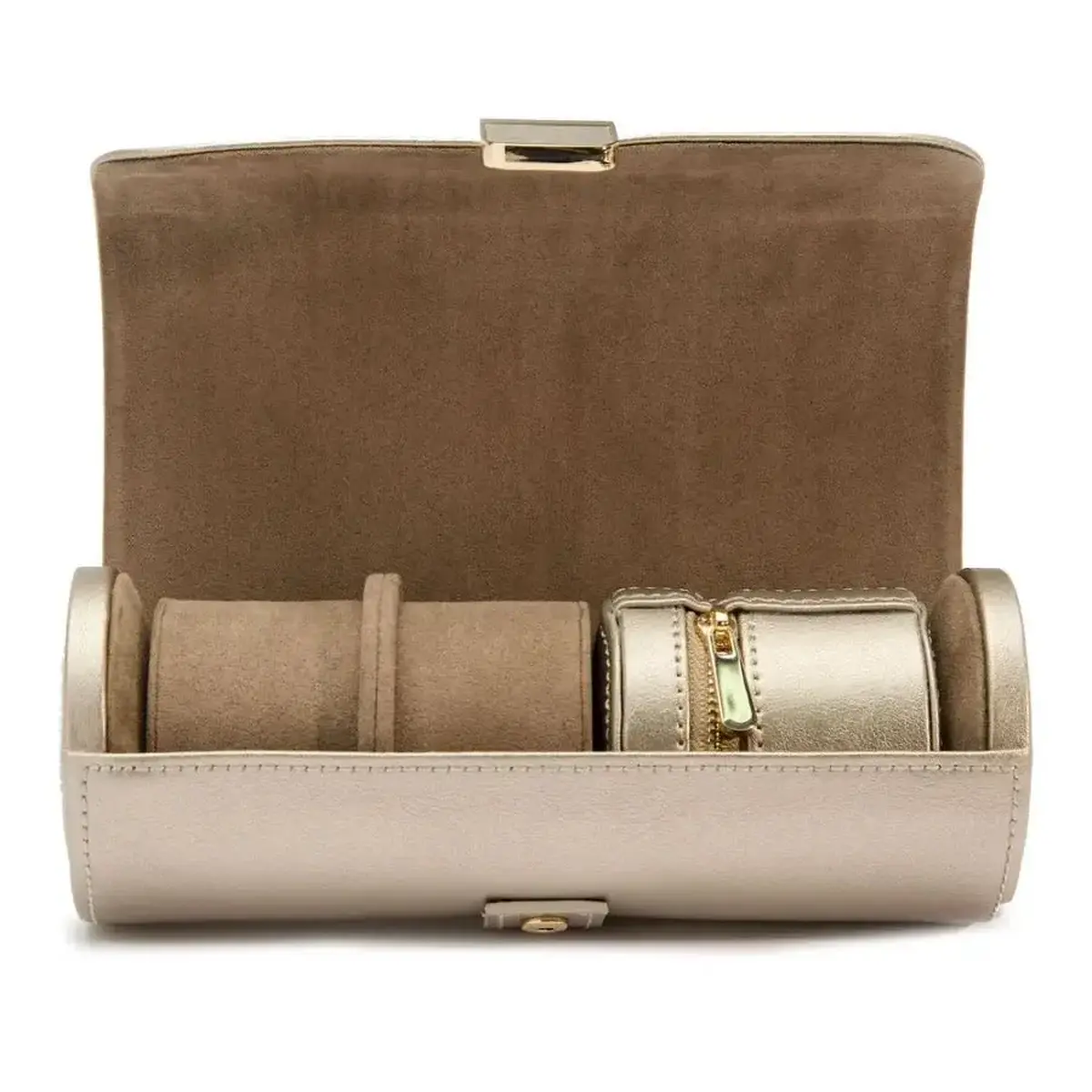 Store your favorite time pieces in this sumptuous leather watch and jewelry roll. Includes: Watch roll suitable for 2 watches (42 mm each), Hidden jewelry capsule with two compartments,1 Watch Guard, Small jewelry storage in zip pouch with small tray inside.