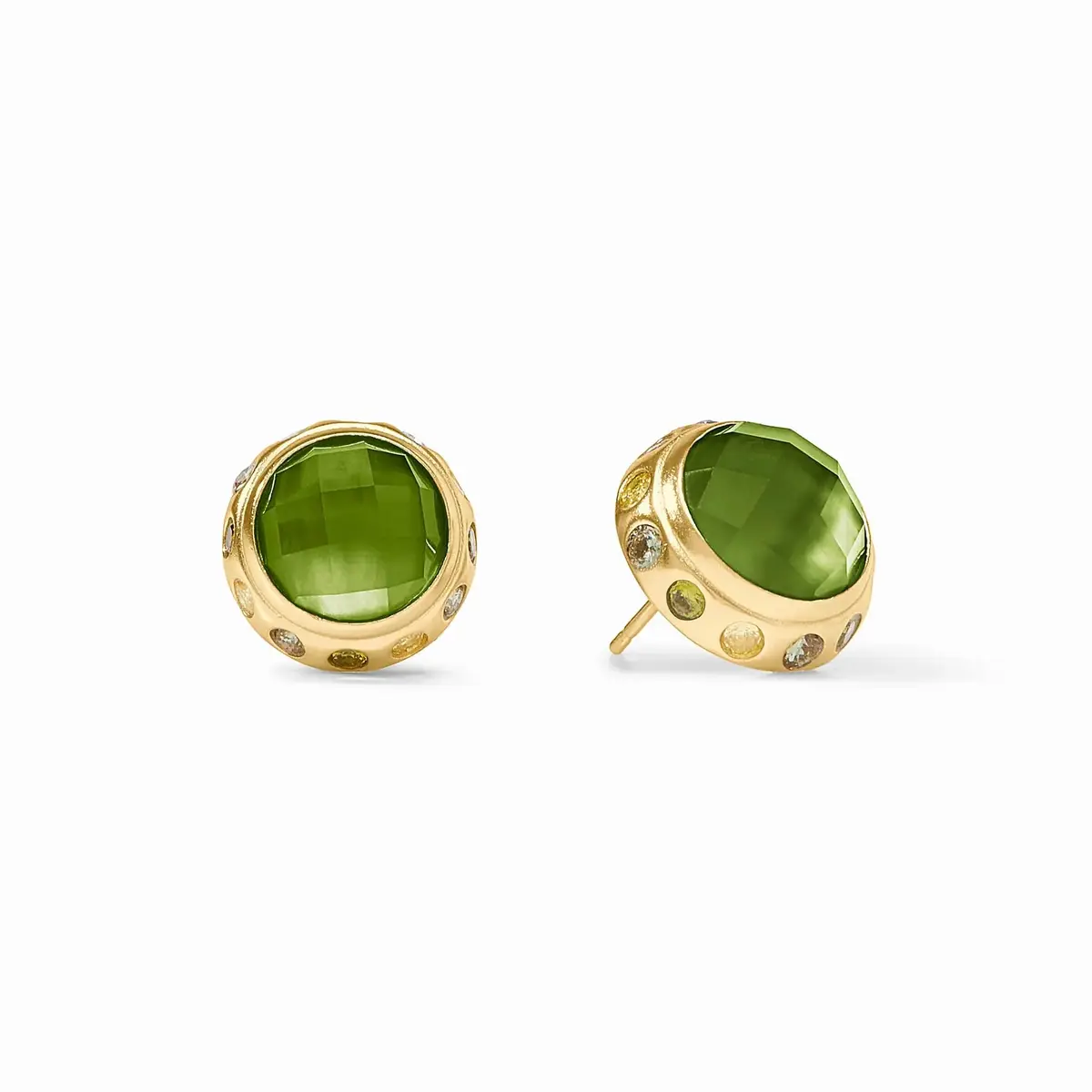 Add a fun pop of color with Iridescent Palmetto Green studs with a Shades of Jade halo.