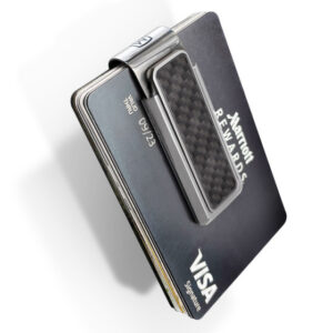 This is our most popular line of money clips, made from super durable solid stainless steel component parts and ultra cool carbon fiber and enamel inlays. Personalize with initials or logos to create a great gift for any occasion. Handmade from start to finish, this money clip is made with the highest precision and care.