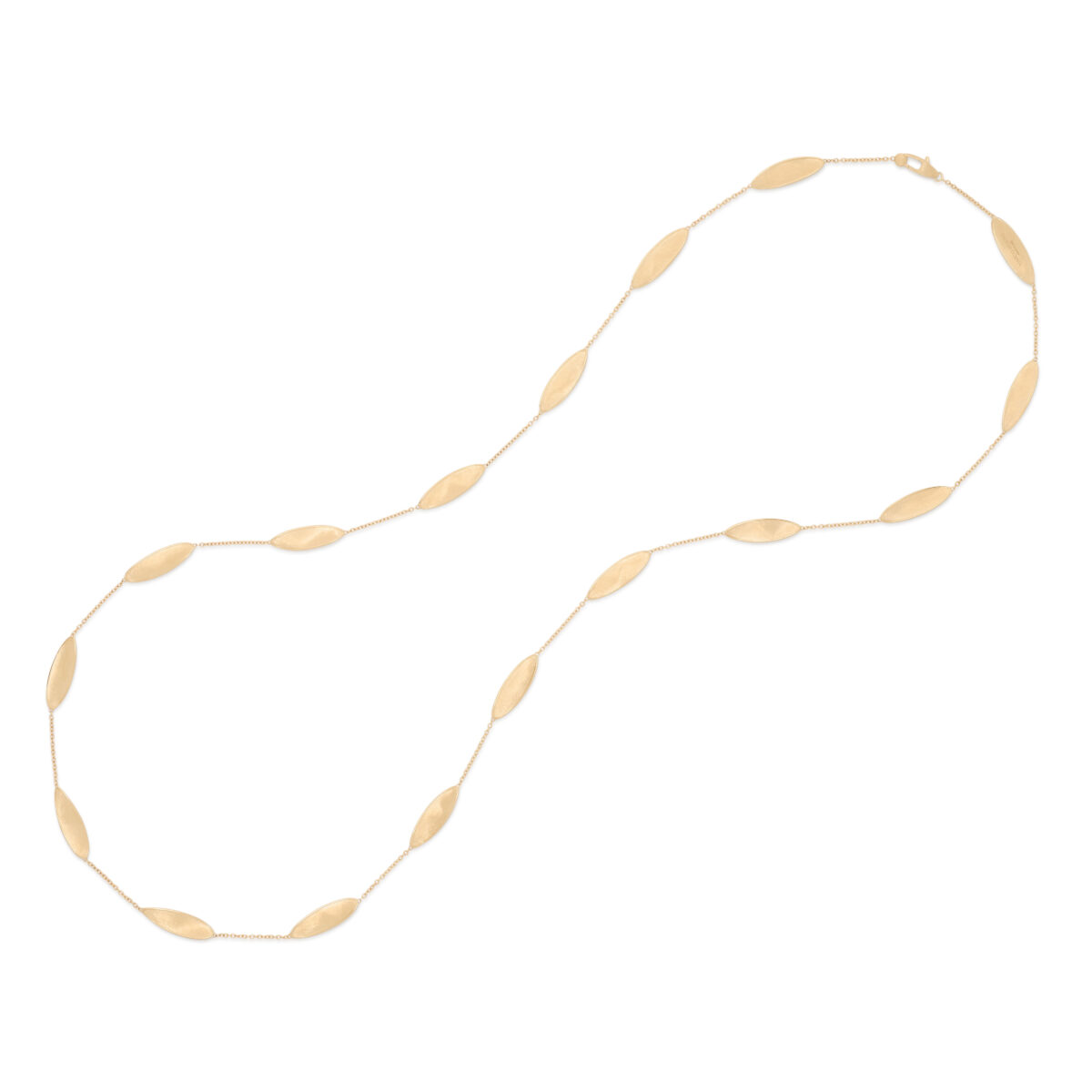 A refined expression of the iconic Lunaria motif, this 18K yellow gold long necklace showcases a sequence of gently twisted leaf elements, hand-engraved using the ancient Florentine technique. The alternating chain provides fluidity, making it a graceful and sculptural accent to both casual and formal looks. Length: 36 inches. Part of the Lunaria Collection by Marco Bicego.