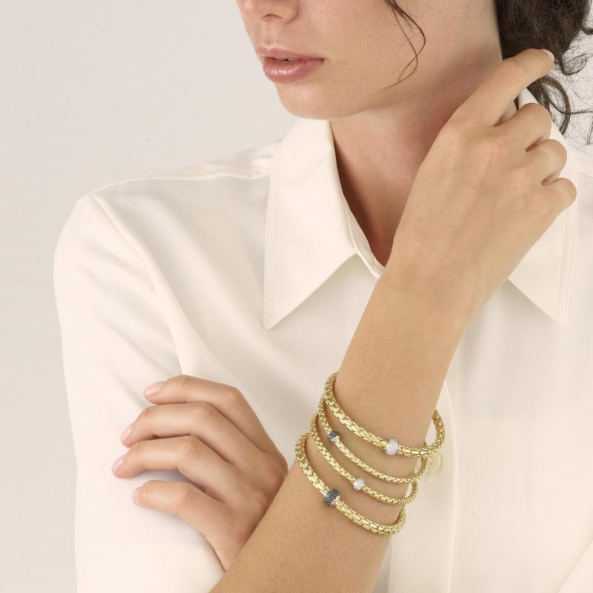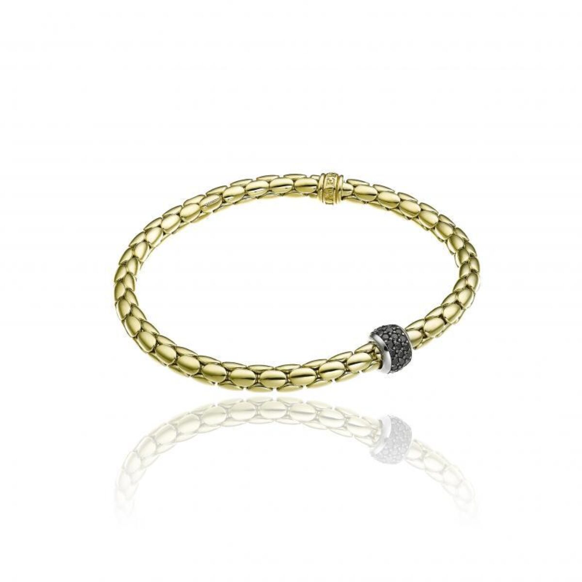 18 kt yellow gold stretchable bracelet with black diamonds.