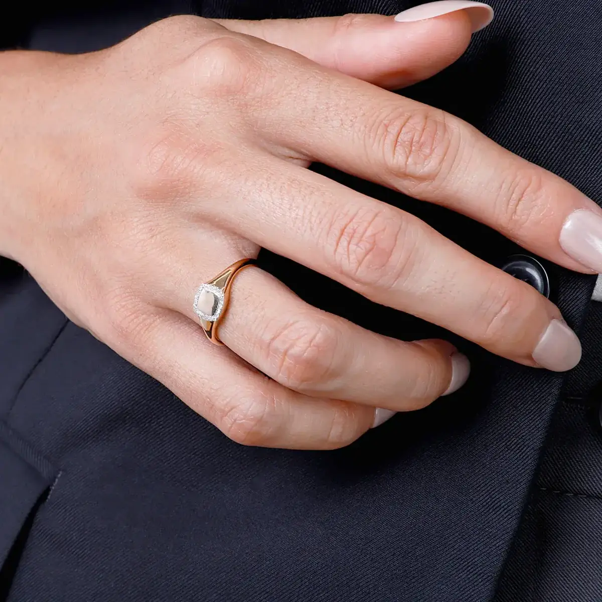 RingsThe Studded Square Signet Ring combines the classic look of a signet ring with a contemporary twist. Crafted in 14k gold, this ring features a solid gold surface accented with dazzling diamonds. This ring is perfect to make a statement with your outfit, whether it's for a special occasion or your everyday attire.