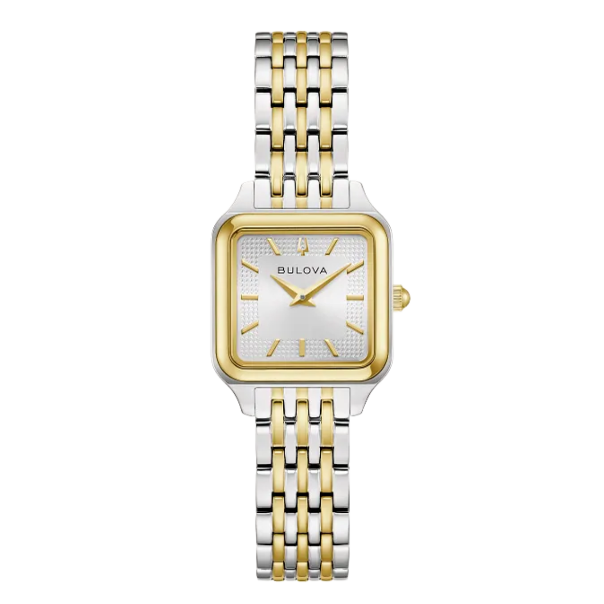 WatchTimeless design meets modern flair with the Bulova ladies’ Classic Sutton Square. A graceful accent to any ensemble, the petite two tone gold- and silver-tone stainless steel case has a soft square silhouette.