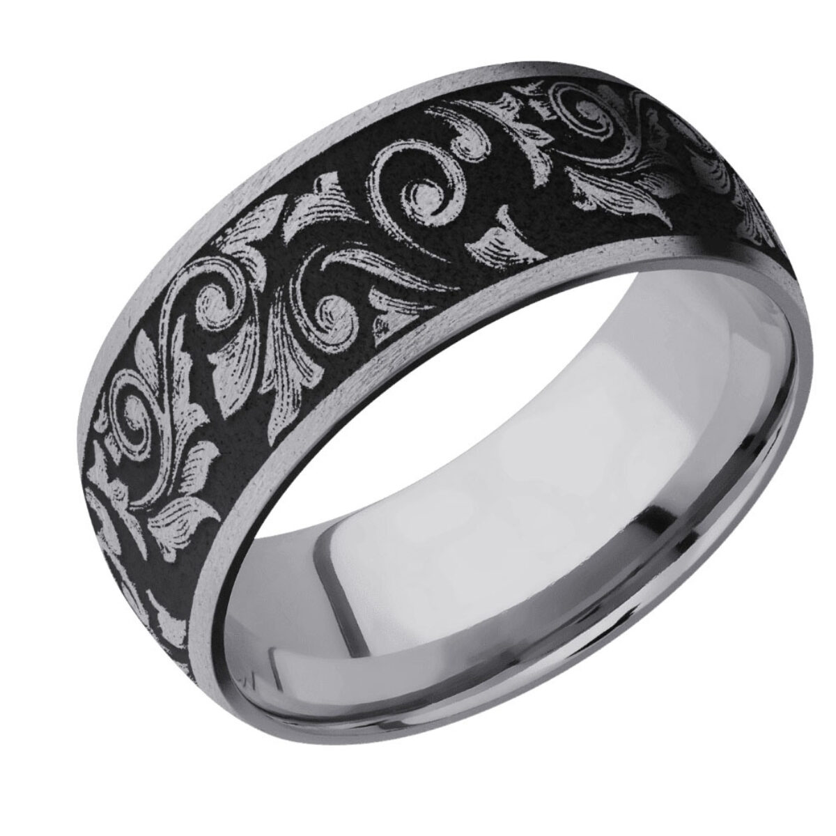 9mm wide Tantalum band with a laser carved Western Scroll pattern.