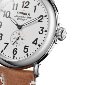 The perfect tan, year-round. Built to last, and named accordingly, every detail of The Runwell was engineered with an obsessive focus to ensure the highest possible quality. The Argonite 1069 high-accuracy movement is the powerful motor behind this bold white dial and sub-second. The polished stainless steel case is accentuated by classic pumpkin crown while the tan natural leather strap complements the refined dial handsomely. A good watch not only tells time, it sets the tone for your whole day.