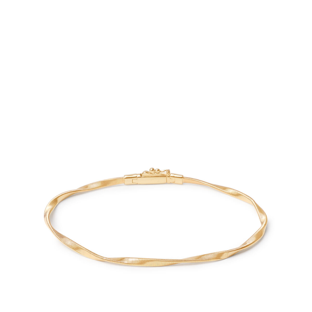 An elegant strand of twisted threads in 18t yellow gold, carefully created with the exclusive coil technique. Perfect on its own, stunning paired with the other bracelets in the collection. Essential in its sophistication.